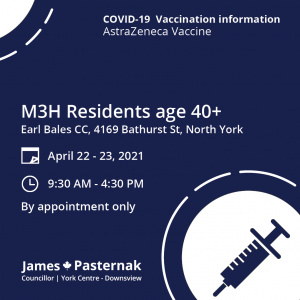 On April 22 and 23, North York General is hosting a vaccine clinic at Earl Bales CC. If you are eligible, please visit the link...