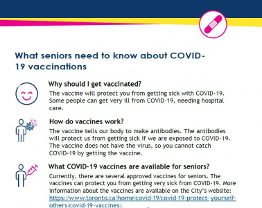 The City of Toronto prepared a fact sheet for seniors. Please share this with your community.