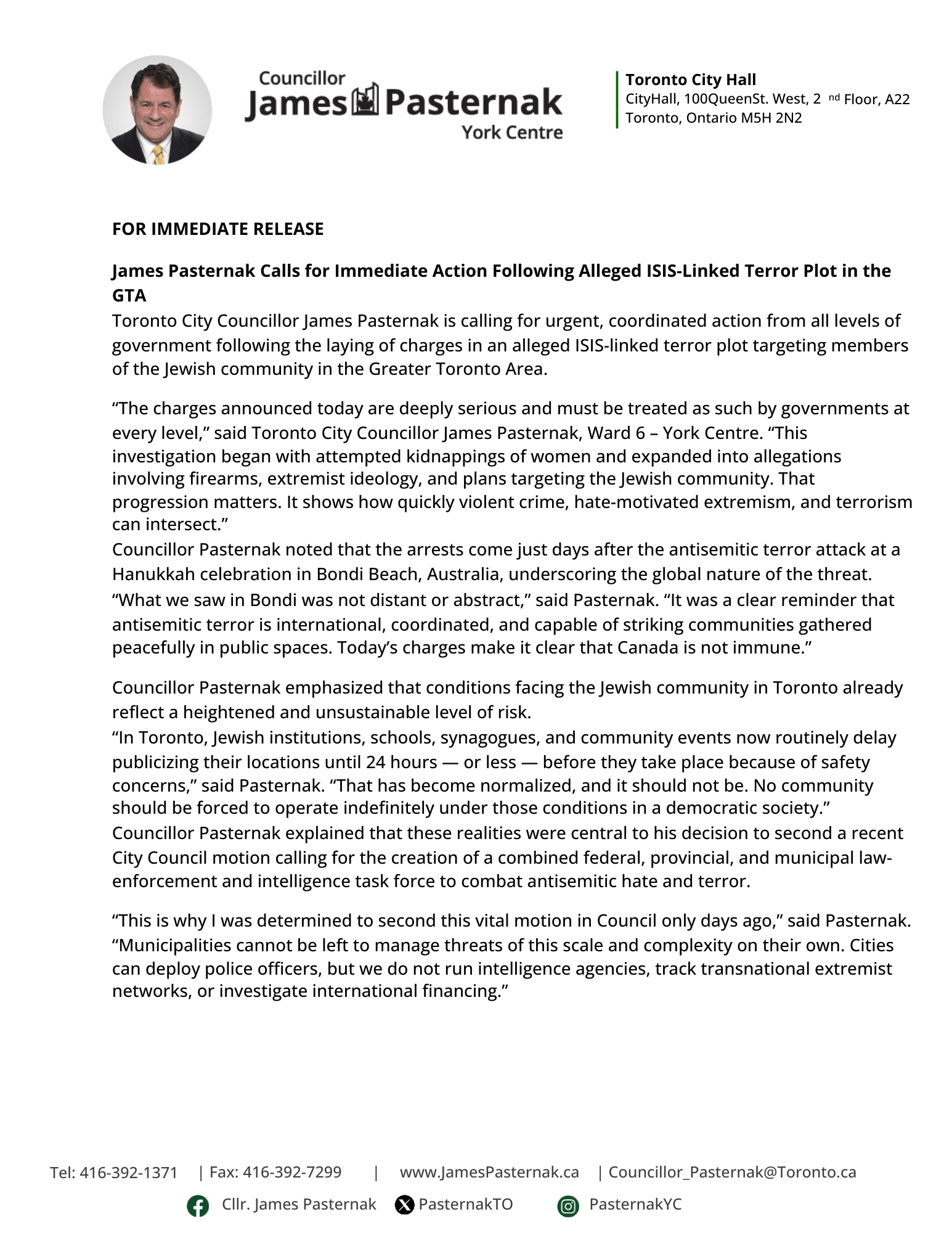 My statement on the alleged ISIS-linked terror plot targeting members of the Jewish community in the…